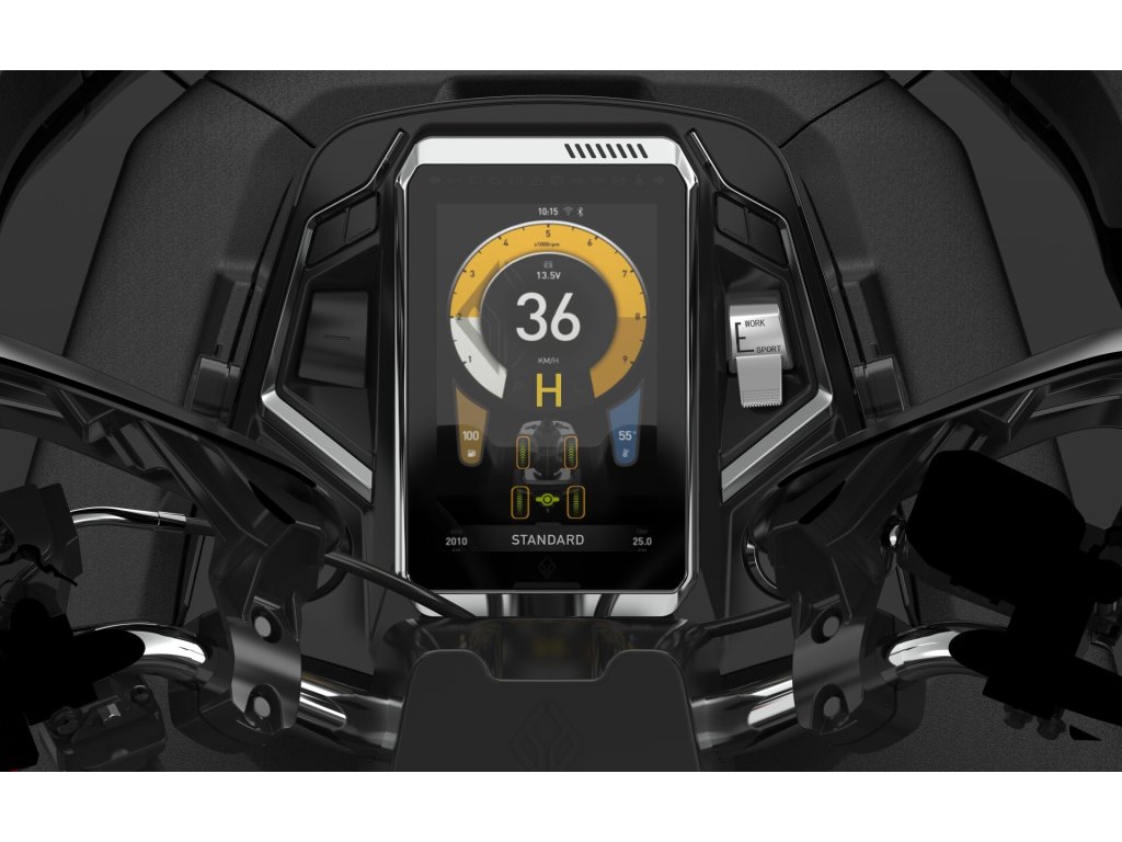 Veľký prehľadný TFT displej, kryty rukovätí aj riadidiel pre vyššiu ochranu, stredová radiaca páka a uzamykateľné radenie prevodovky zaisťujú komfortné a bezpečné ovládanie.