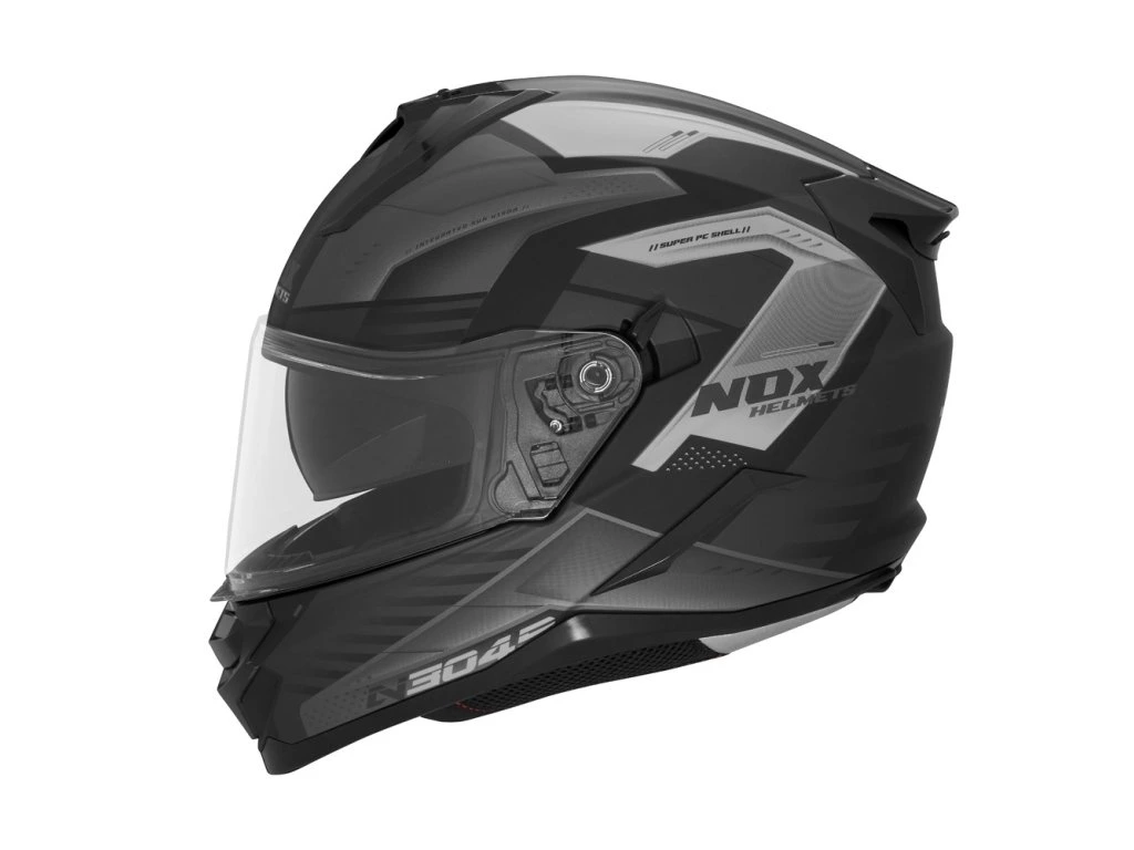 Integrálna prilba N304-S je športovo cestovná prilba so slnečnou clonou, ktorá je tvorená polykarbonátovou skorupinou s použitím vysoko odolných materiálov.