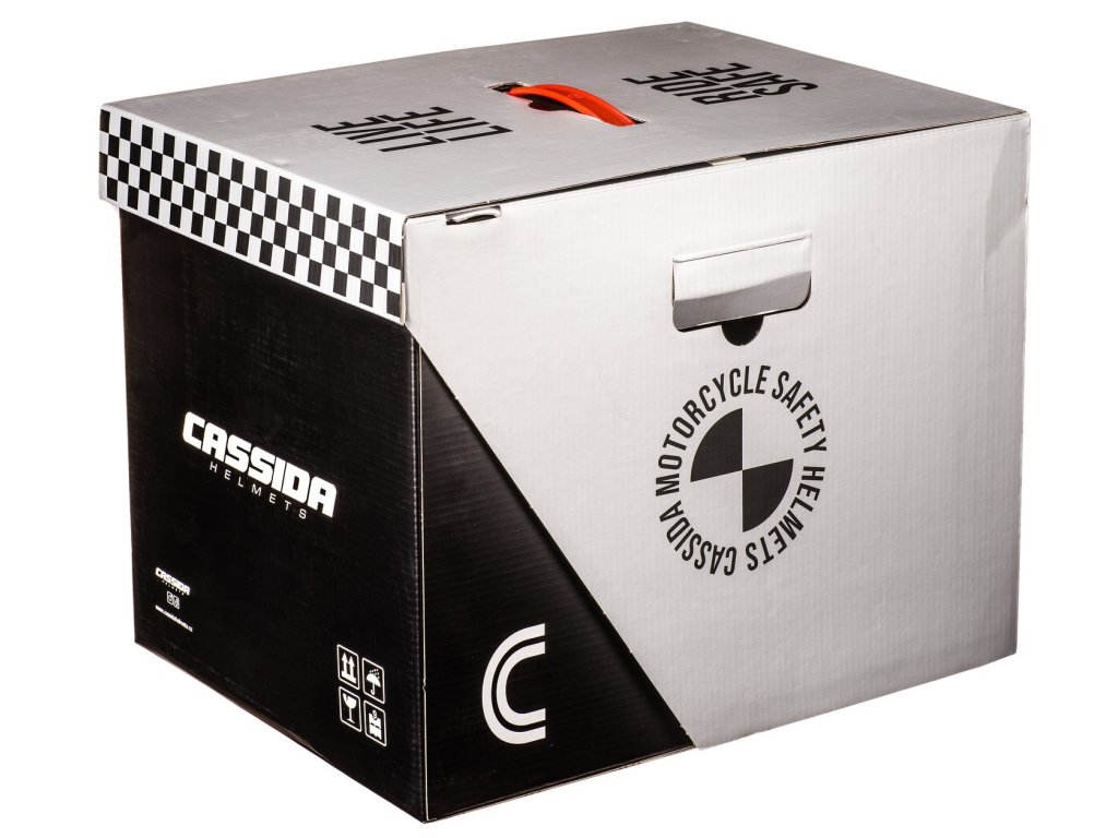 Prémiový obal CASSIDA HELMETS v podobe dvojdielnej krabice s madlom.